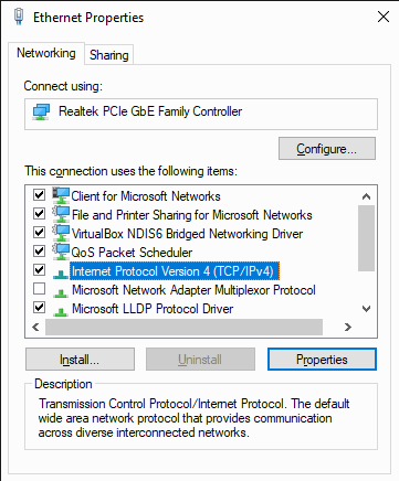 In the dialog box that appears select "Internet Protocol Version 4 (TCP/IPv4)."